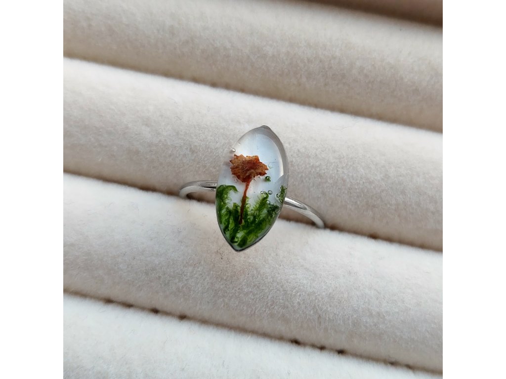 Prstýnek ze stříbrné chirurgické oceli s maličkou houbou a mechem. Velikost prstýnku je univerzální, nastavitelná. Velikost lůžka je 8 x 16 mm.